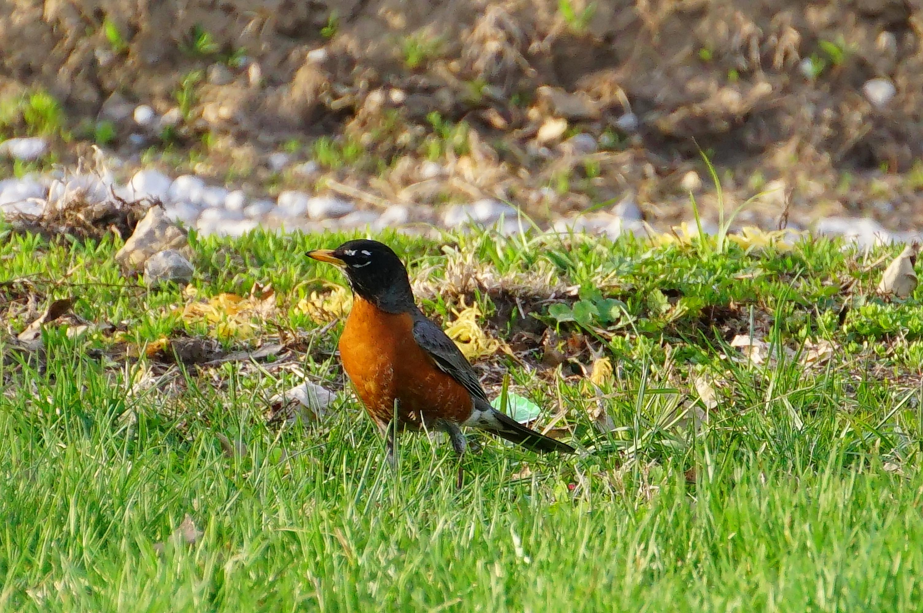 Observations of nesting behavior are increasing as more American Robins arrive to breeding territories. This time of year robins are busy collecting nest material as they start the construction process and prepare to welcome the next generation. Some have even completed their nests and are staring to lay eggs!