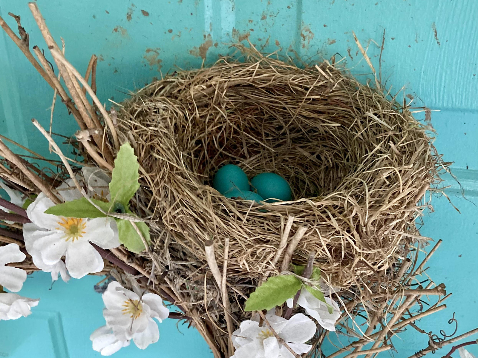 Debbie in Donnellson, IA: "One Robin sitting on her nest on a dreary, rainy day. Temperature at 48 F." (05/03/2022)