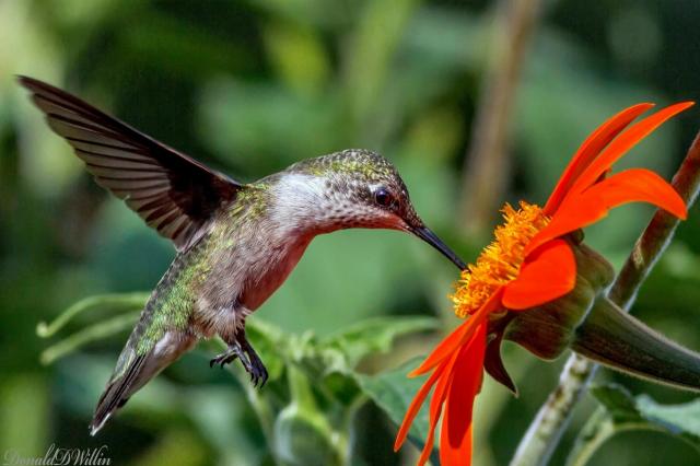 Hummingbirds rely nectar-rich flower gardens and the presence of insects to fuel their migration south. Hummingbirds use a lot of energy as they dart among flowers to drink nectar and fly along tips of tree branches to catch insects.