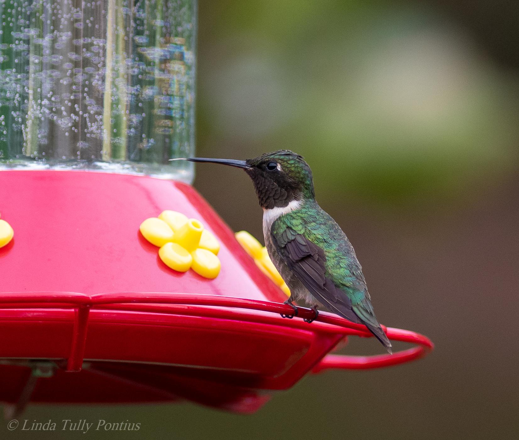 Linda in Melbourne, IA: "After rain and cold front came through on Sunday, Monday morning I cleaned and refilled the 2 feeders with warm sugar syrup. The 2 hummingbirds who had been here last week came quickly and tanked up, then left. I thought the season was over.... One more arrival showed up early this afternoon. Glad to provide some nourishment for the journey!"(09/29/2020)