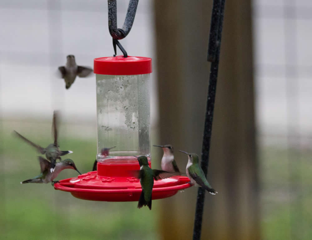 It's spring and there has been a lot of migrant activity. While some Ruby-throats have pushed north into Michigan, Illinois, and Iowa, the majority of reports (over 90) this week are from fallouts observed south of 40 degrees latitude. Slow moving storm systems have kept migrants holed up along the Gulf coast, and one reporter shared the photo above from Texas to show the large numbers of Ruby-throats at their feeders.