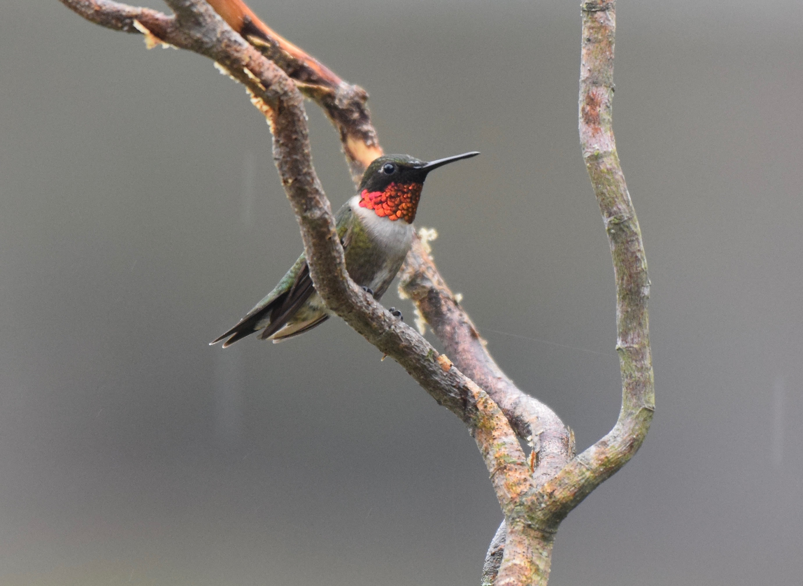 “Male ruby-throated hummingbird was seen in my rural yard chasing a sparrow and feeding from a nectar feeder.” Harrington, North Dakota on May 10th.