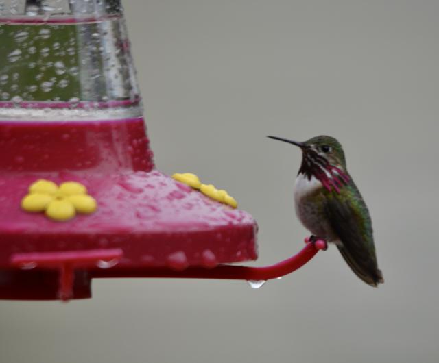 From Emmett, ID: Janice reported, "I just moved to Emmett Idaho and I put 2 feeders out approximately 3 weeks ago, and this morning much to my delight I spotted a Rufous going from feeder to feeder. (05/01/2020)
