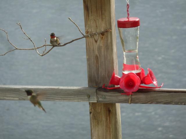 Journey North citizen scientists submitted numerous reports of hummingbirds checking out hanging flower baskets of fuchsia and verbena, nectaring from the flowers of chives, Bradbury Monarda, and penstemon and darting to-and-fro among tree branches looking for protein rich insects.