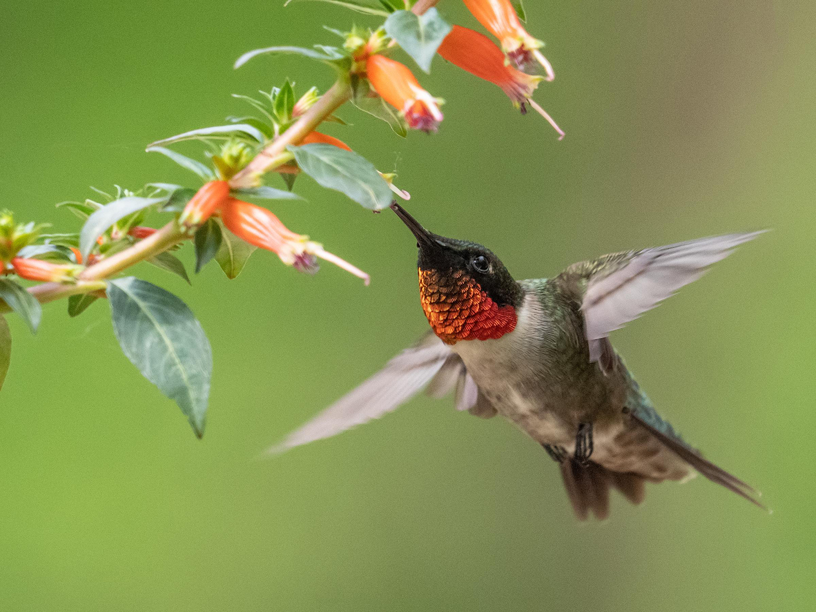 Marjorie in Lowell, MI: "Male ruby-throated hummingbird on the pink salvia. The female showed up a little later and then I saw the courting display!" (05/17/2022)