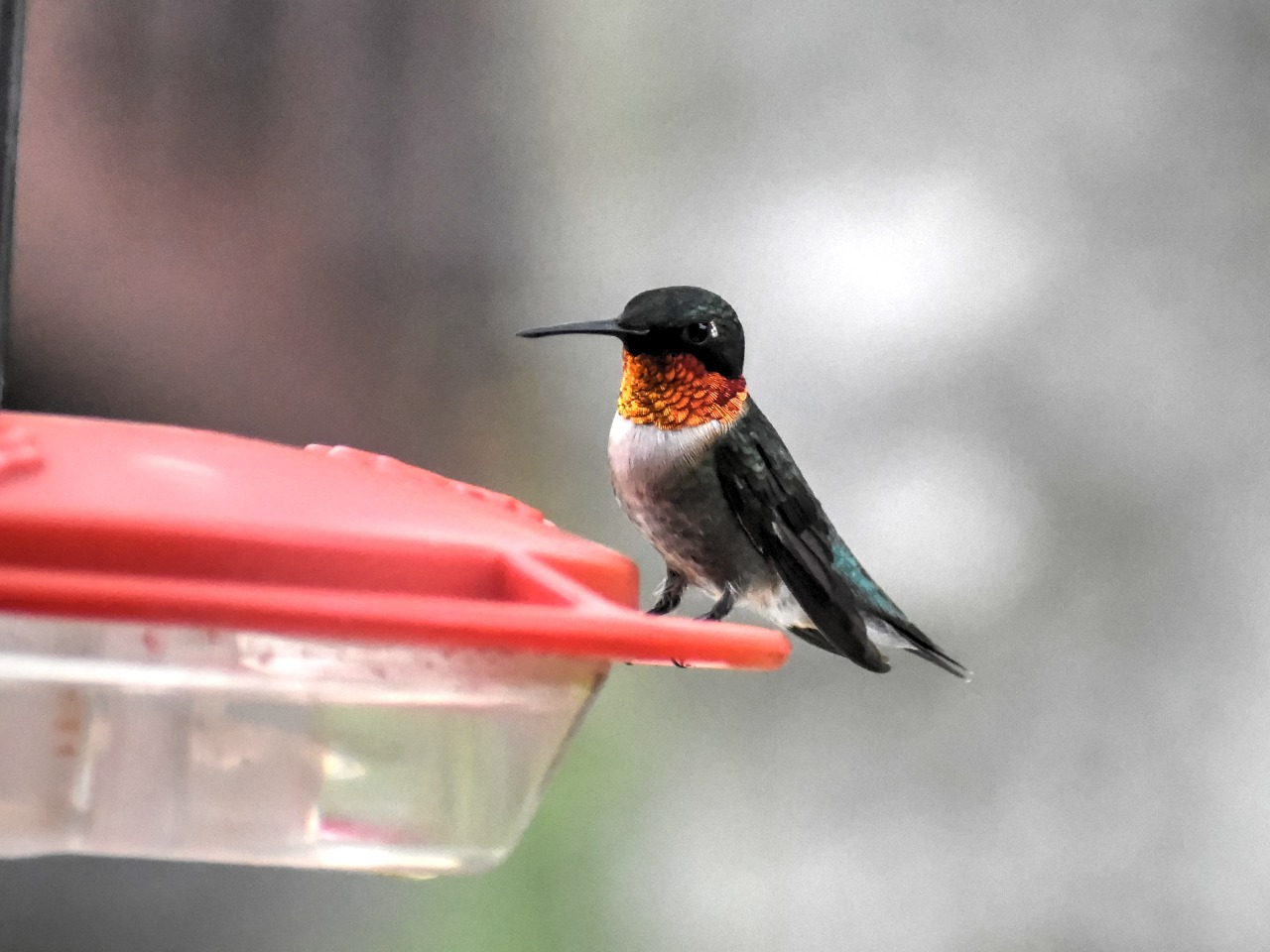 Elizabeth in Walpole, NH: "He stayed for a very long drink at a feeder I put in a different location than years prior. . . The first males arrived the same day last year. . ." (05/03/2023)