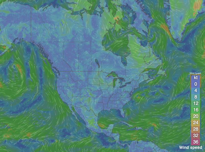 Study current weather maps for clues to migration patterns. Pay attention to the weather fronts, pressure, wind, and temperatures in regions where hummingbirds have been sighted. Photo courtesy of Windy.com