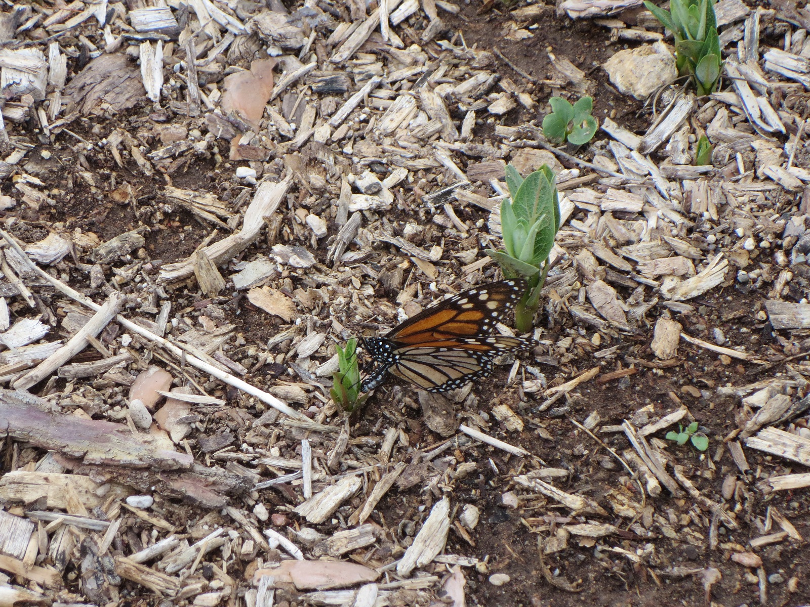 Female monarch laying eggs on emerging Asclepias speciosa shoot Las Vagas, NV (04/04/2019) Photo by: Anne Marie