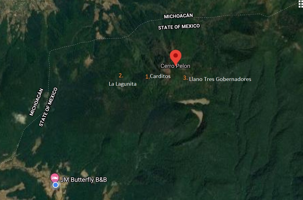 Sites of Cerro Pelon’s first three colonies Sites of Cerro Pelon’s first three colonies, November 2020. These colonies first formed on (1.) 10/28, (2.) 11/3, and (3.) 11/7. Photo by: Ellen Sharp