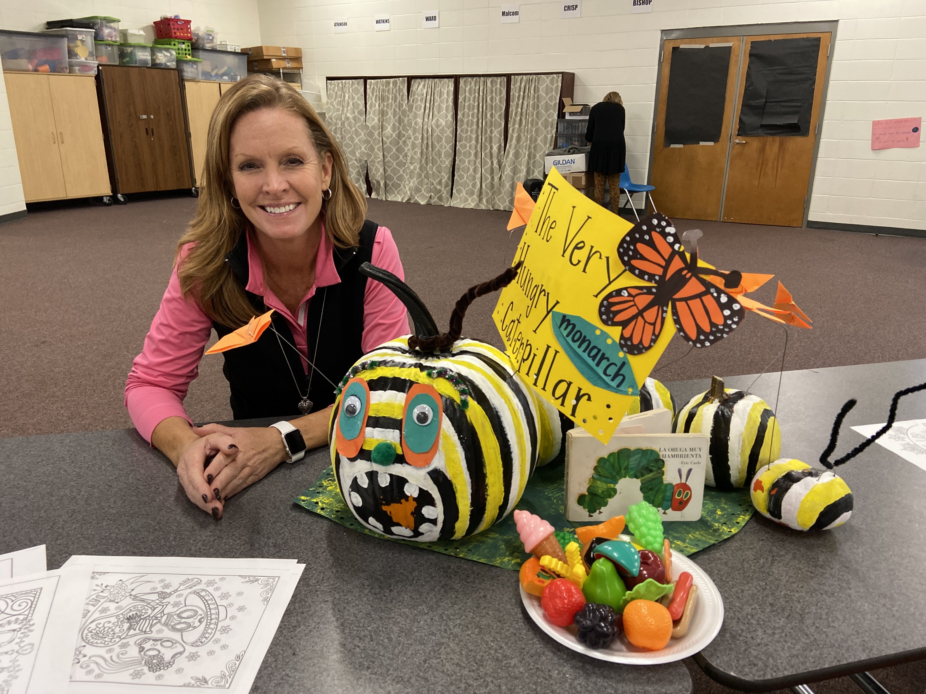 The Very Hungry Caterpillar Ms. Spence with decorated pumpkin Photo courtesy of Sharon McCullough, co-chair Monarchs Across Georgia