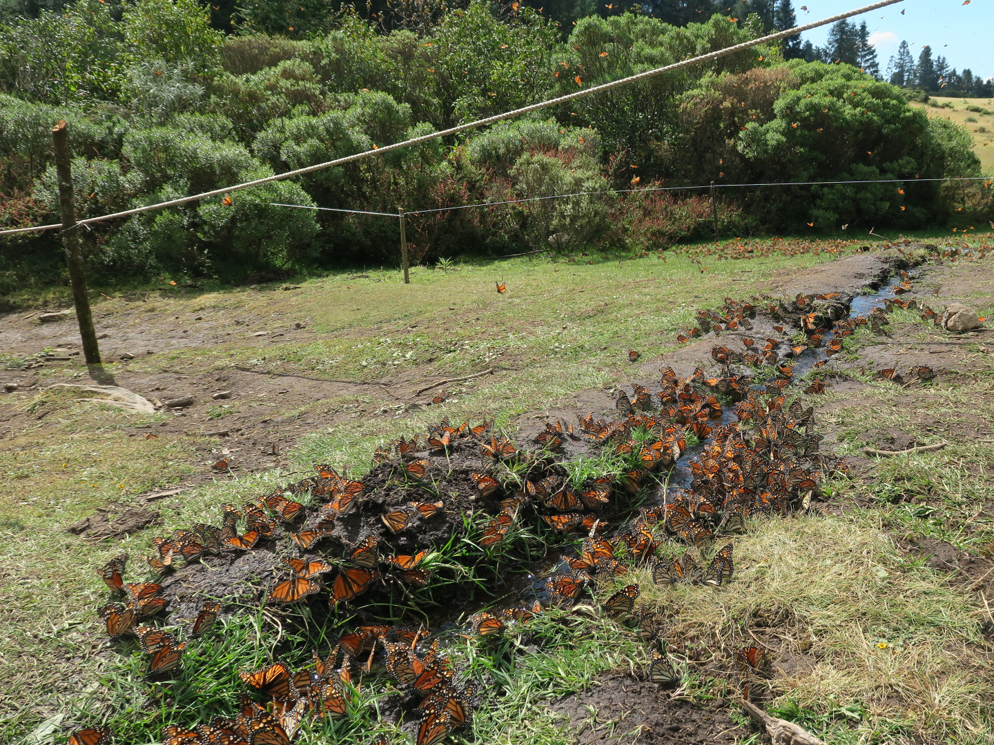 At Cerro Pelon Sanctuary, Ellen Sharp details a first visit of the season to one of Cerro Pelon's three colonies. The journey was one of contrasting scenes: a healthy number of monarchs surrounded by pockets of deforestation. Ellen writes, "We passed through the decimation of the monarchs’ former roost in La Lagunita and ascended to a place people call El Capulin. Dark specks circled the skies above, pressed down by clouds. Then we reached the trees, a mix of pine and fir, blinking with orange. When I looked up, my heart soared to see so many monarchs filling the air and alighting on the trees. When I looked down, my heart sank. Even here, right next to the colony lay tumbled trees."