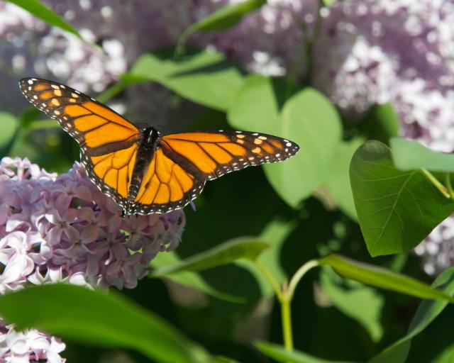 From Minneapolis, MN: Shannon reported, "A short time after the sun broke through an otherwise cloudy day, the monarch was flying around neighbors backyard and cane to rest on an evergreen." (05/25/2020)