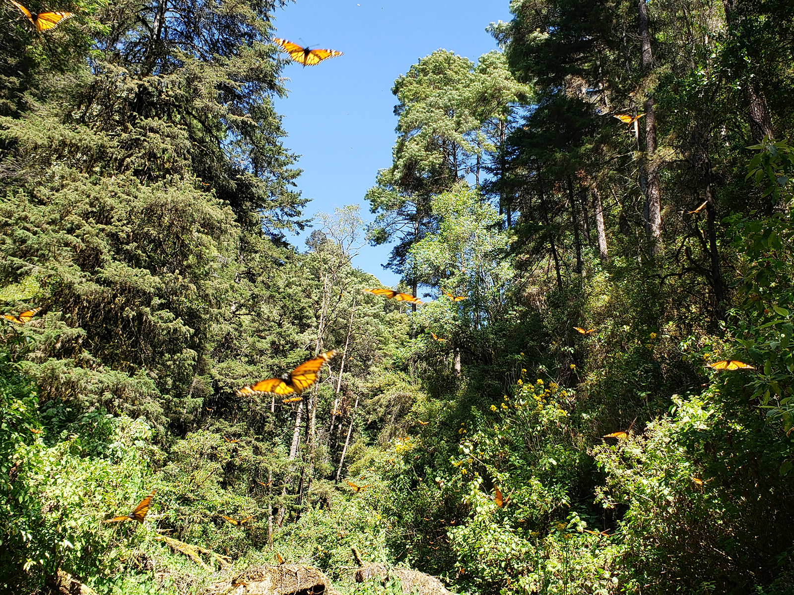 At El Rosario and Sierra Chincua, Estela Romero highlights some differences between the two sanctuaries and senses migration is not far away. She writes, "Sierra Chincua and El Rosario have become, over time, a contrast in terms of behavior and population at this point of the season within the last few years . . . it seems that at any moment they [monarchs] could fly down in mass to head north! We are holding our breath wondering when this will occur."