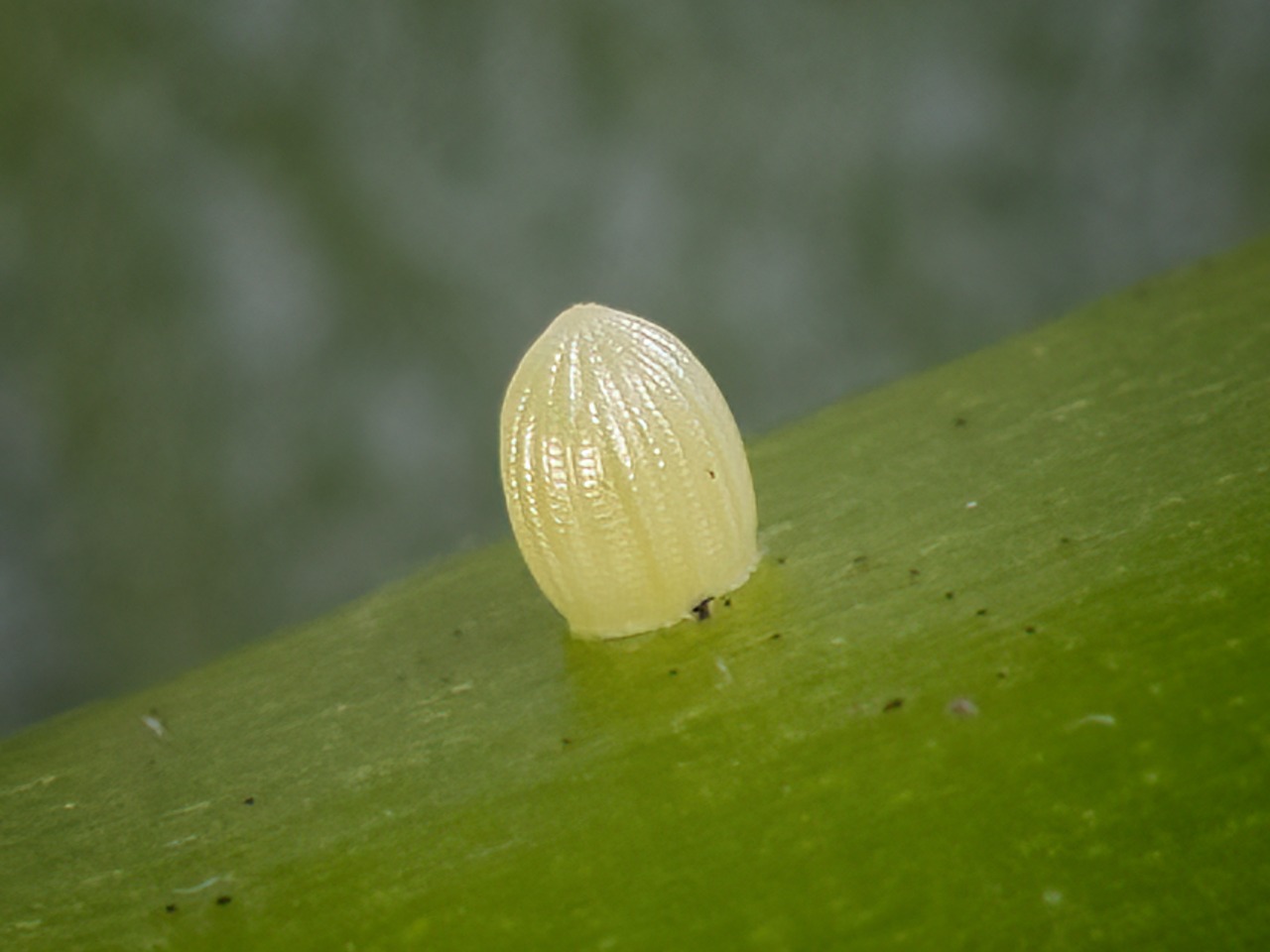 “After spotting a male patrolling the yard, I was on the lookout for any eggs,” wrote Laura in Lakeshore, Ontario, on May 25. “This one jumped out at me because it was on the top side of a small plant along the driveway. A quick search of the surrounding Common Milkweed turned up three more eggs. I did not check all of them as I have over 100 plants.”