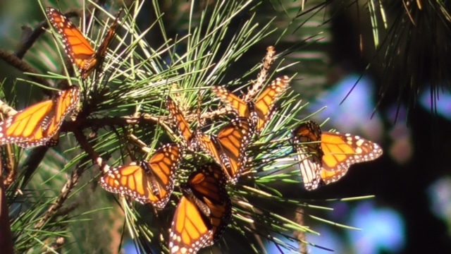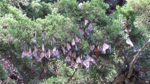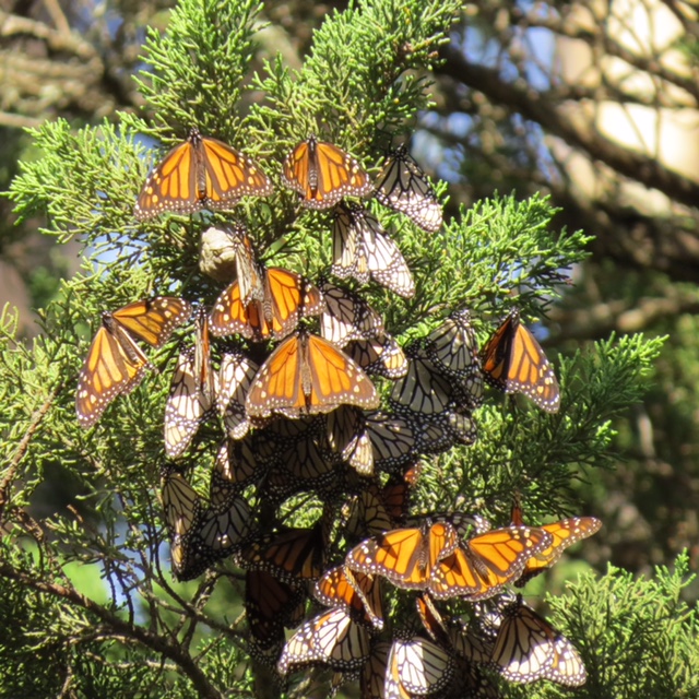 Diana Magor has been watching the monarchs in Santa Cruz, California. “I went with friends to see and do a rough count of monarchs at Lighthouse Field. I estimated about 700 at LF at noon on Dec 26. Most were on the south facing cypress tree just starting to open their wings as the sun was out and the temp warming. It warmed to over 55F and some started flying, but usually just short flights to different basking spots."