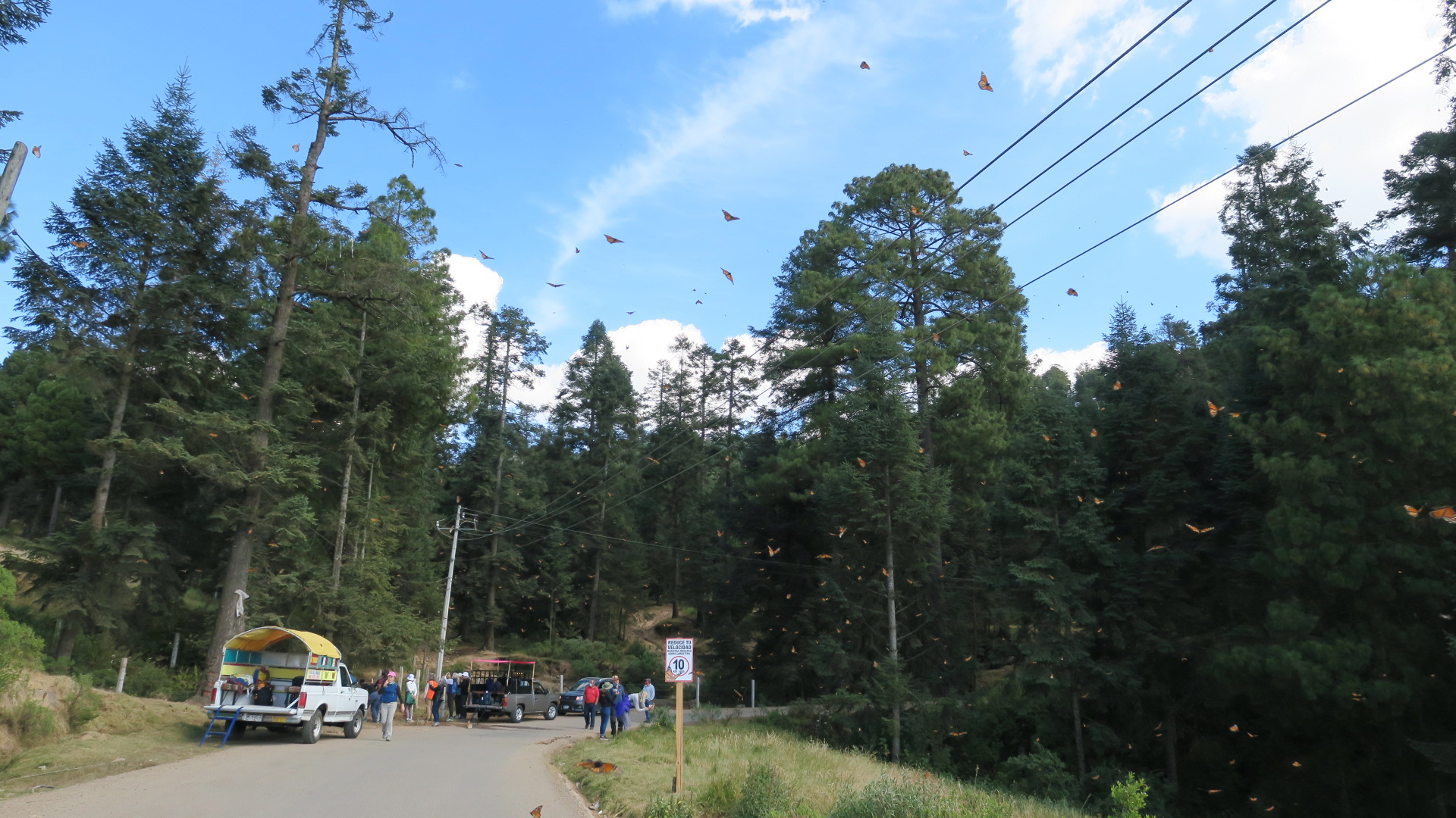 Manejar rumbo al Santuario de “El Rosario” es ahora una experiencia indescriptible puesto que una oleada continua de Monarcas bajando de las montañas de “El Rosario” está provocando el paro instantáneo de visitantes, que inevitablemente saltan de sus carros para atrapar el momento del interminable desfile de mariposas!