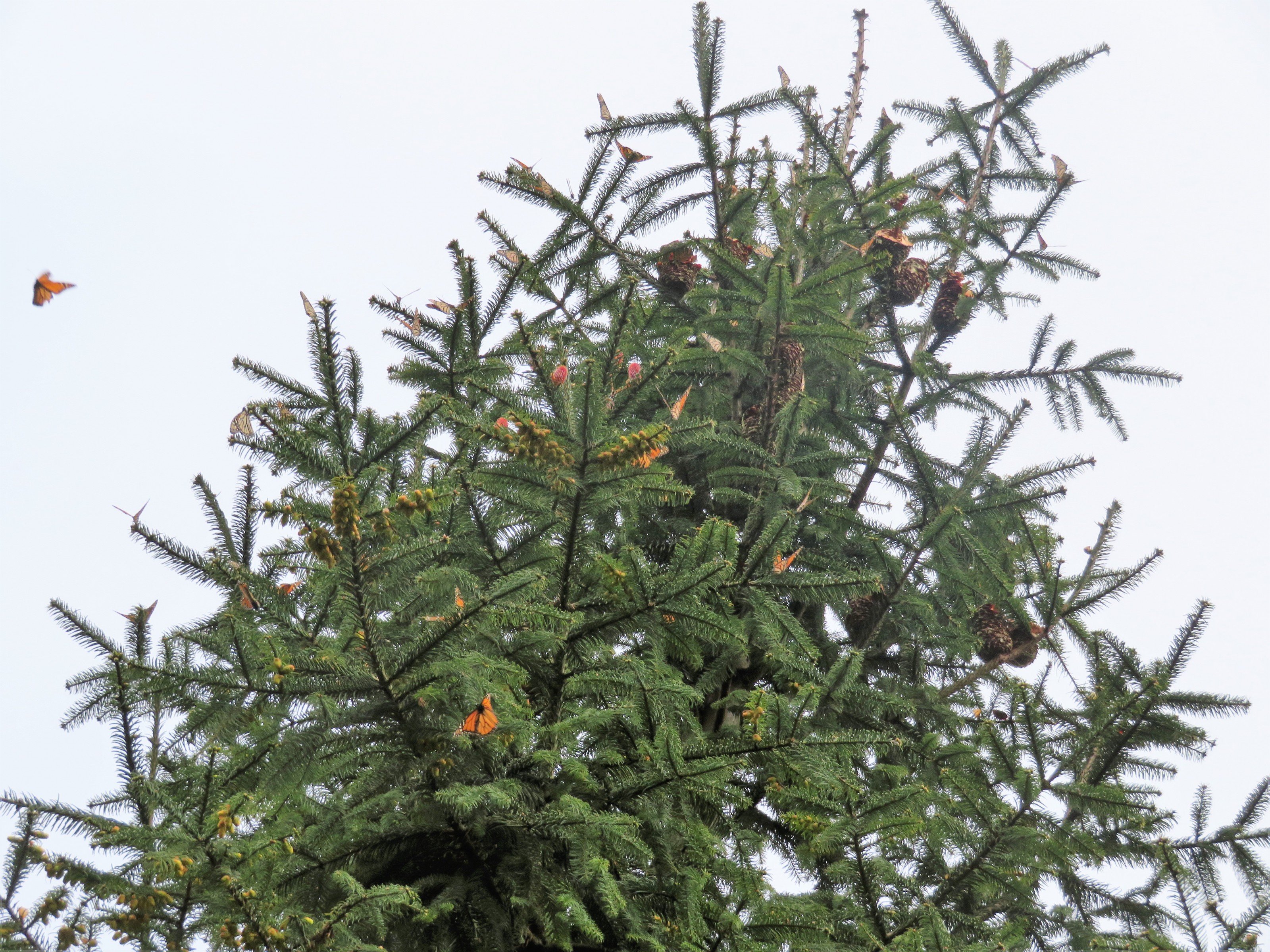 The monarchs of Cerro Pelón have finally definitively departed. The CEPANAF rangers and Butterflies & Their People arborists saw some still clinging to trees on the afternoon of March 18. By the next morning, the trees emptied out and the air filled with butterflies. By midday of the 19th, they were all gone. Many seemed to have stopped over in El Rosario on their way out, where their numbers swelled over the last few weeks.