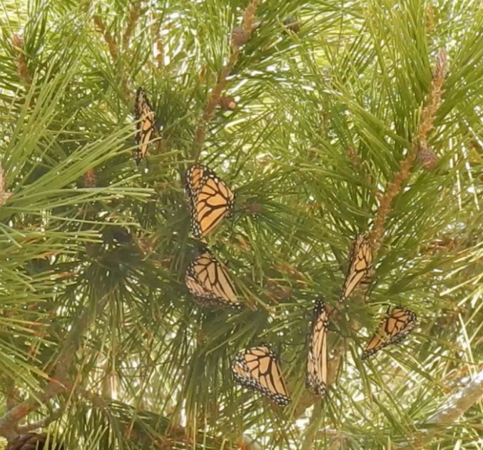 While clusters of monarchs are frequently reported in the East during the migration with their larger number of monarchs, small clusters can also be seen in the West. The warmer temperatures in the Southwest corridors can act as a funnel increasing numbers of monarchs flying in from the northern region West of the Rockies as they merge with monarchs in Arizona, Nevada and Utah. As they fly to California and Mexico, monarchs can often be found in small numbers on trees near rivers and ephemeral creeks with good nectar nearby – the perfect “Bed and Breakfast” for a night stopover! Keep your eyes open and report any sightings.