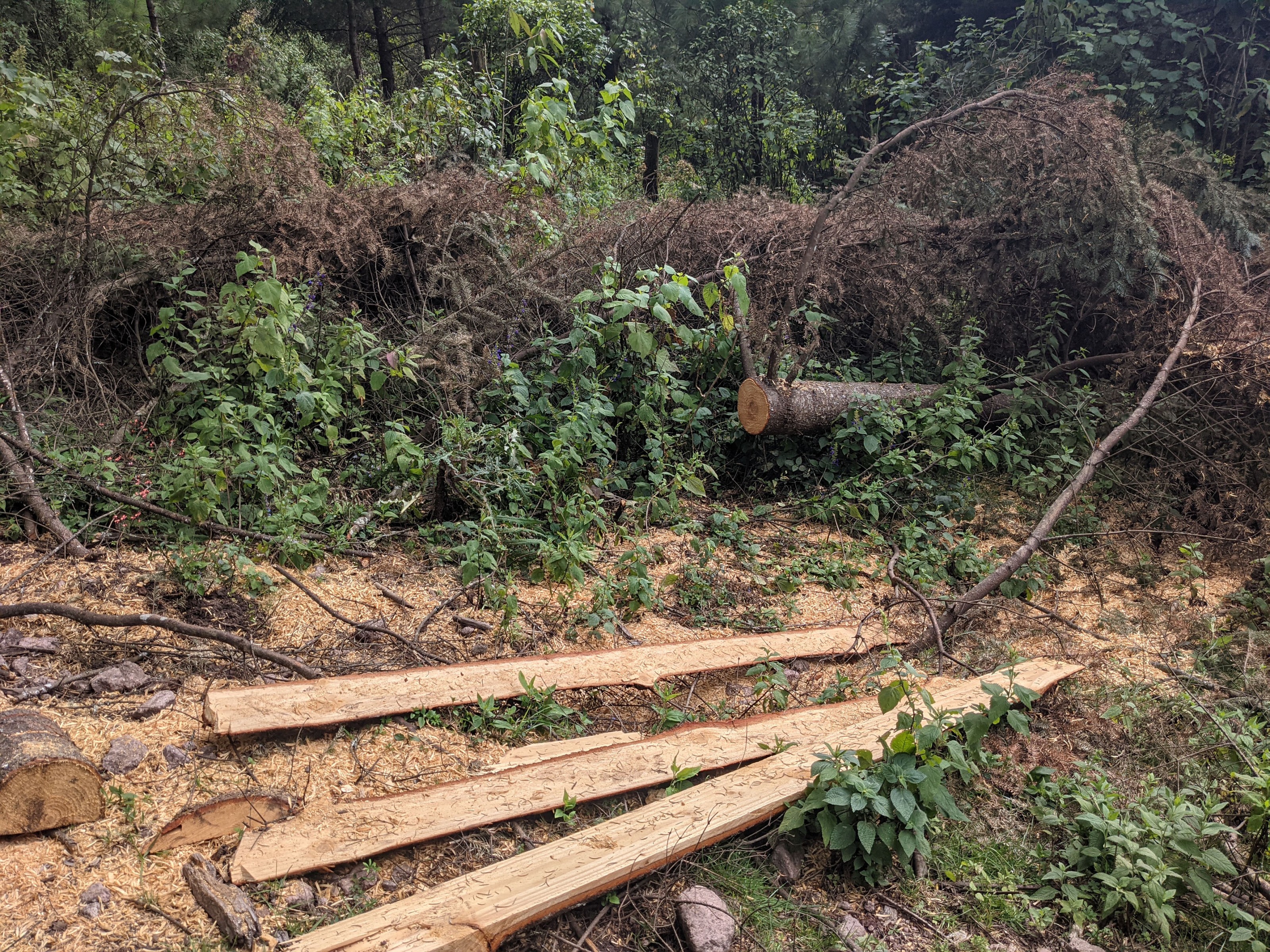 Once we got closer to the butterfly colony, we started stepping over wood chips and tree debris. Toppled oyamel trees held onto their evergreen. “That why it’s good to use them for wreathes,” my sister-in-law Ana remarked tersely. She walked ahead, documenting the destruction. It had been hard to see all the logging when we’d walked this same path to the colony last November. This year there were at least four times as many trees down on the ground. “I felt like crying when I saw all that,” Ana admitted later.