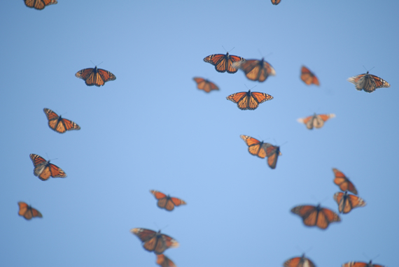 A. We're not sure exactly what cues the monarchs use. We do know that those that migrate emerge in a state of "reproductive diapause," which means that they won't reproduce at four to six days of age like summer monarchs will. We also know that some combination of information from daylength, temperature, and possibly the age of the plants they are eating triggers this state.