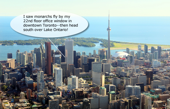 Monarch migration can be invisible to us when we watch from the ground. There is a large gap overhead where monarchs can travel and we can't see them. Journey North tracks migration based on visual observations, so questions about the height of flight are important: