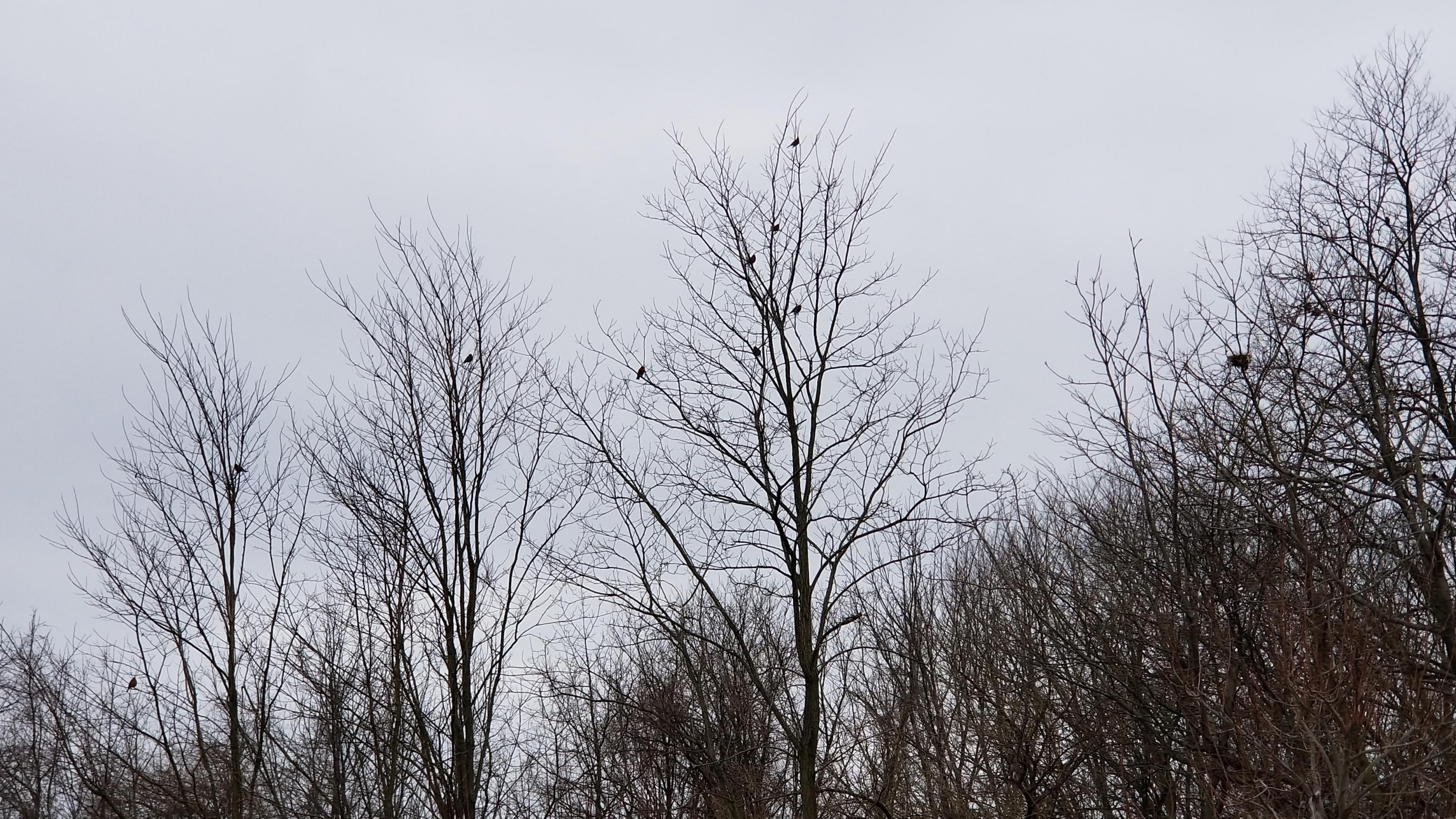 As Erica commented: "Great flocking of 100+ robins ascended in our yard and neighbor's yard in our bordering trees and shrubs. This great activity lasted 5 hours, and it's something we have seen in other years. Must be all the berries and pool cover fresh water that invites our remarkable robin fest. Spring cannot be far behind!" (Atlantic Highlands, NJ; 03/02/2019)