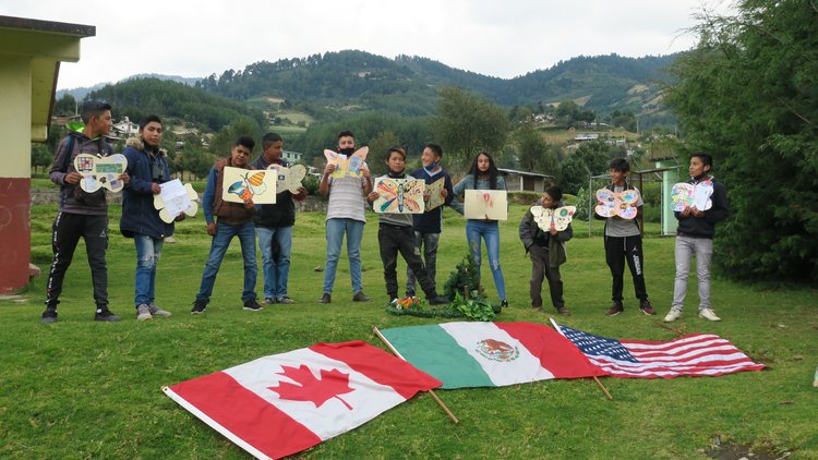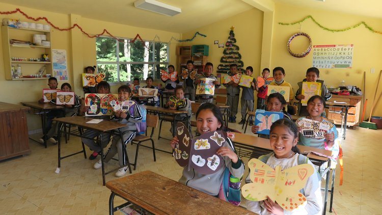 To date, Ms. Romero has visited fourteen schools near the Sanctuaries of Cerro Pelon and El Rosario, distributing over 450 Ambassadors. Each one of these Ambassadors was received by a student as a gift from the class or group in the United States or Canada that created it.