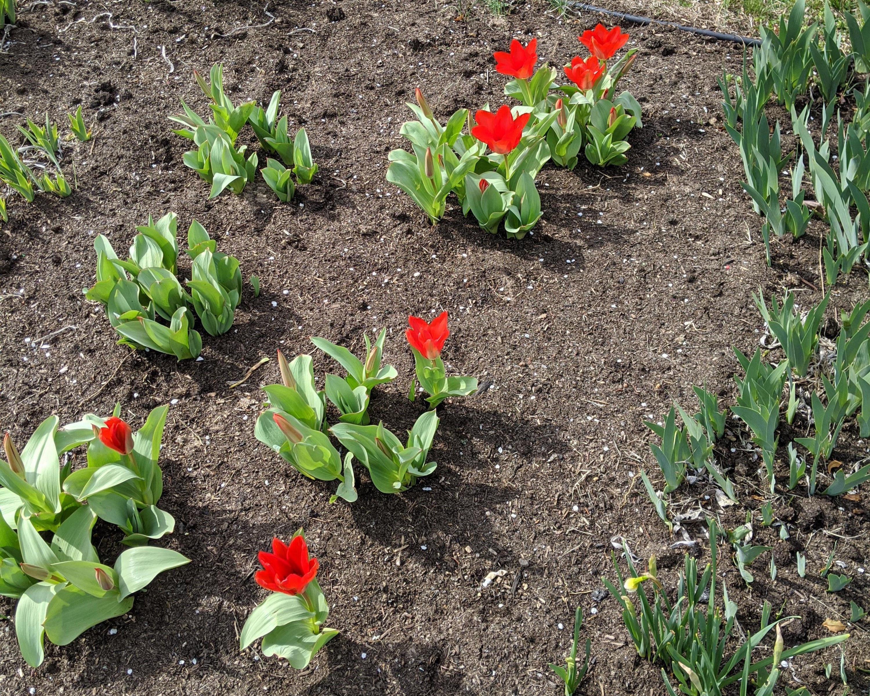 From St Catharines, ON: Margaret observed, “18 tulips emerged in my front garden.” (03/10/2020)