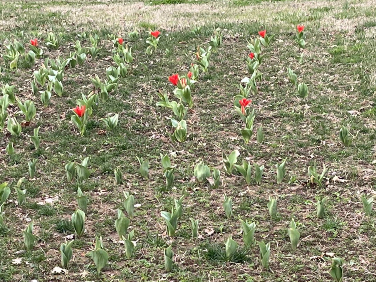 In Zephyr, Texas, on a crisp January morning, V. Dianne noticed the first signs of tulip life, as four delicate shoots pushed through the earth, signaling the beginning of spring. Just a month later, V. Dianne reports that several tulips are in full bloom: “We are excited! We had noticed splashes of red on multiple plants and were just waiting. The weather has been extra warm, then went down to 26 degrees on Saturday. We covered the emerging plants with hay to protect them, uncovered on Monday. Today it is 80 degrees.”