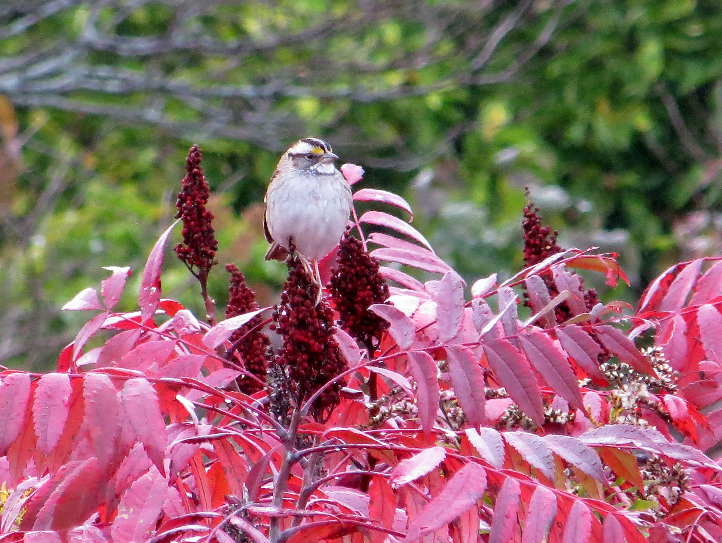 "What are the birds eating these days? There are still a few gray dogwood berries left but very few. Some new berries have ripened on Virginia Creeper, the Black Tupelos and the Junipers. Virginia Creeper is a vine that can climb to the top of tall trees. In the fall the leaves of the Virginia Creeper turn red so a tree can have a trunk that is all red and have its own leaves a totally different color . . . In one vine I saw American Robins, Gray Catbirds, Swainson’s Thrushes, Red-bellied Woodpeckers and Scarlet Tanagers feasting on the berries." Read Chuck's Weekly Birding Report #28.