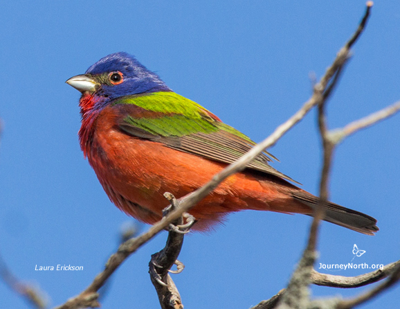 Painted Buntings are nocturnal migrants that arrive along the Gulf Coast in April. Image by Laura Erickson